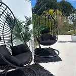 En terrasse med en svømmepøl og en privat pool er også inkluderet.